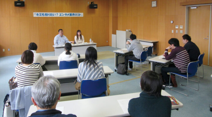 エンタメ業界とはどういった世界なのか、どんな職業があるのか、どういったことを気を付けるべきなのかをお話いたしました。